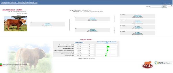 Para a consulta da avaliação genética dos seus ascendentes é necessário clicar nalgum destes, para que vão aparecendo todos os dados respetivos existentes.